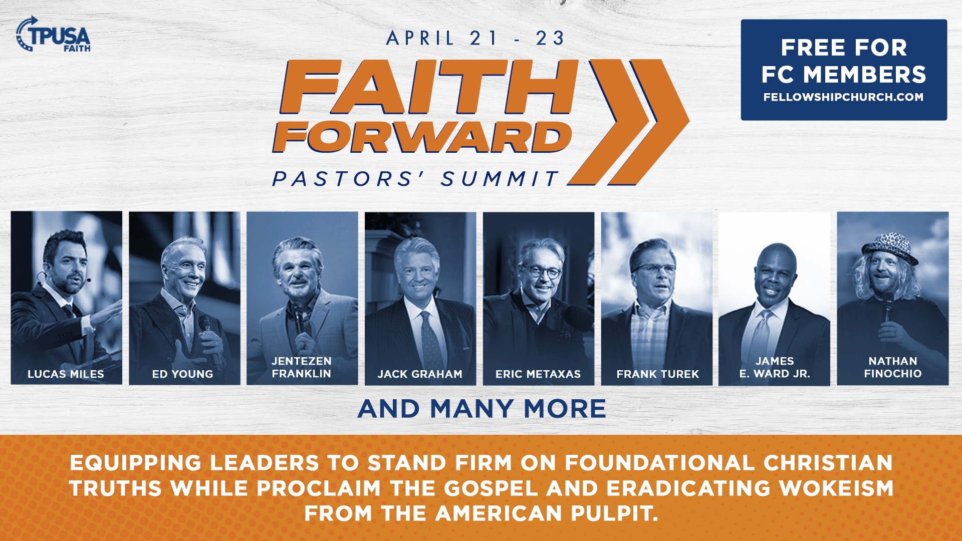 The Faith Forward theme focuses on strengthening the Church by returning to primary doctrine, fostering biblical discipleship, and reigniting evangelism to impact our communities and nation. This summit is about equipping leaders to stand firm on foundational Christian truths and proclaim the gospel boldly, while working together to eradicate wokeism from the American pulpit.